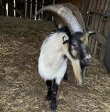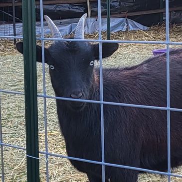 Cranmeadow Raven is by ARMBRO LASER out of SNORES. Her owner lost her farm in Maine and had to relocate. She and her sister Belle made the trip south and now they share their days with their herd mates Harley and Sam.