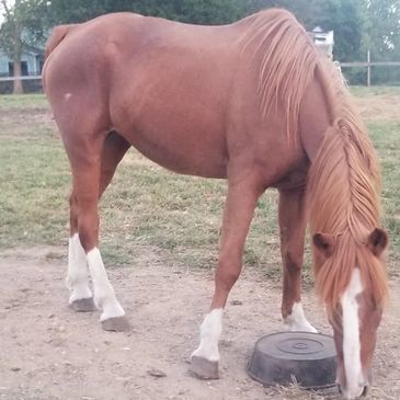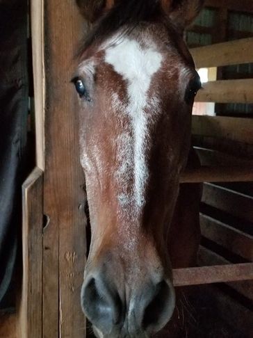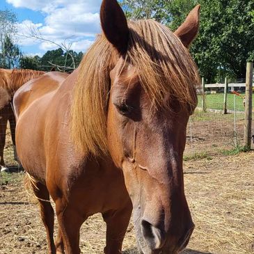Minnie is a very nice mare who loves attention. She spends her days with Amelia. She is always the first to try and sneak out of the field when the gate opens.