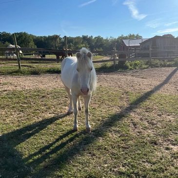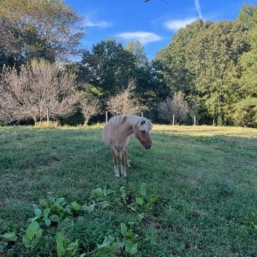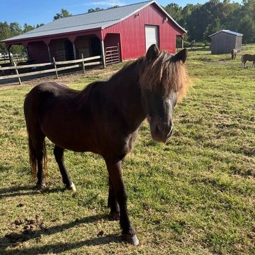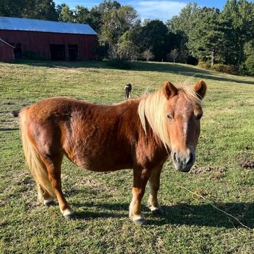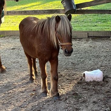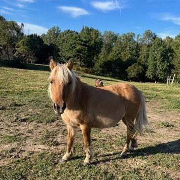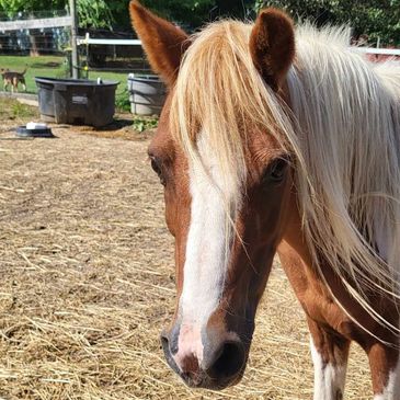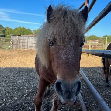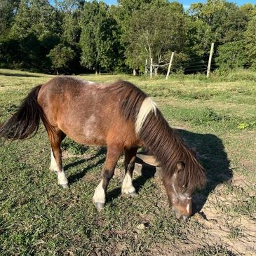 Cupcake is an aged mini mare who arrived in September 2022. Her family was no longer able to care for her "special" needs and medical necessities. She is 100% blind, previously foundered, and has cushings. She requires special grain, spring full-body clippings, and frequent farrier care. She resides with her seeing-eye donkey, Rosie.