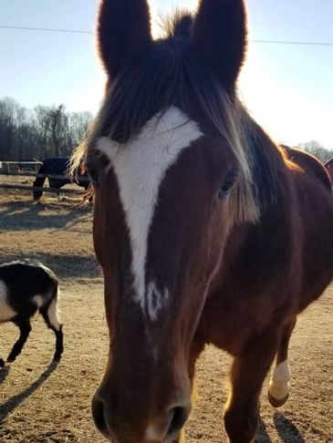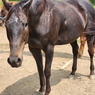 Bess is a local owner surrender. She worked the Amish fields all her life, then was given away. Her owner reached out when she was no longer able to care for her.